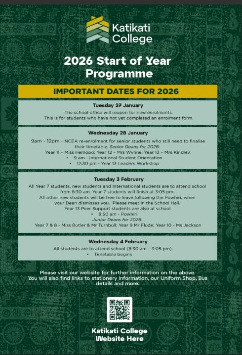 As this year comes to a close, I want to thank you all - students, whānau, and staff - for your contributions and support throughout 2025. I hope to see many of you at the upcoming final assemblies and prize givings as we reflect on this year’s successes and prepare for the opportunities ahead.