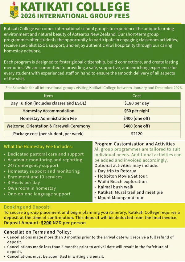 For all queries relating to international students please contact international@katikaticollege.school.nz